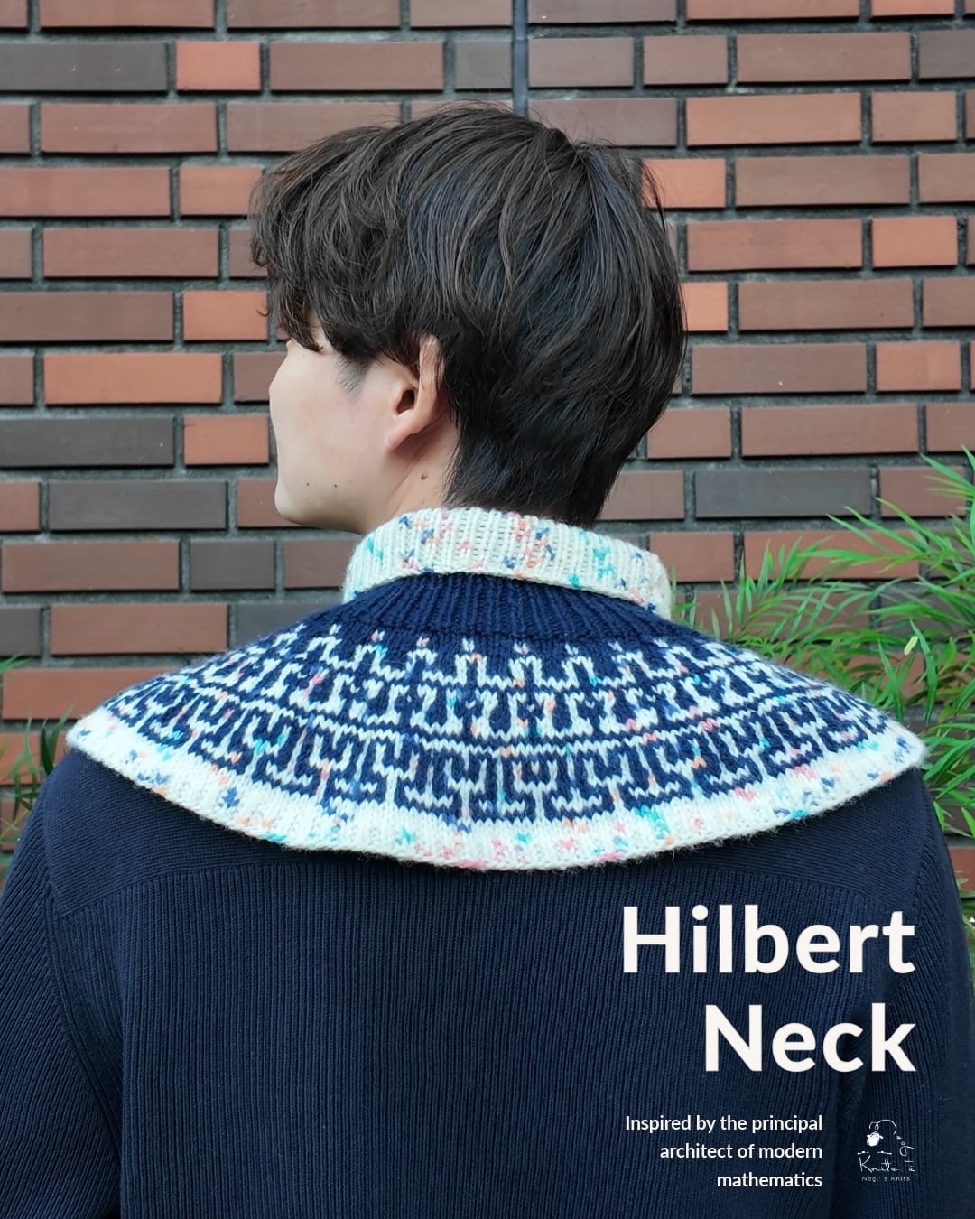 現代数学の父、ダーヴィット・ヒルベルトが考案した「ヒルベルト曲線」にインスピレーションを受け、“線”が“面”へと広がっていく編み物の不思議さを表現しました。